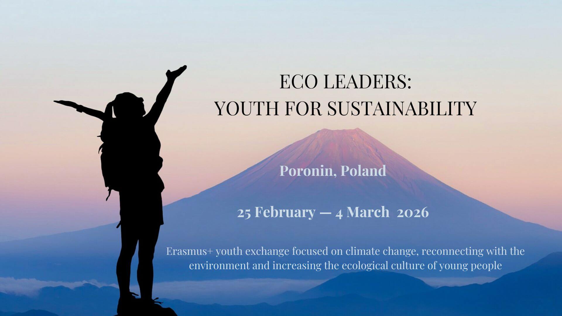 Our international youth exchange „Eco Leaders – Youth for Sustainability“ will take place on 25.02.2026-4.3.2026 in Poronin (just outside city of Zakopane, 80km from Kraków). We will gather 39 people from Poland, Czech Republic and Italy. Each group is 12 youth (18-30) plus 1 leader with no age limit.