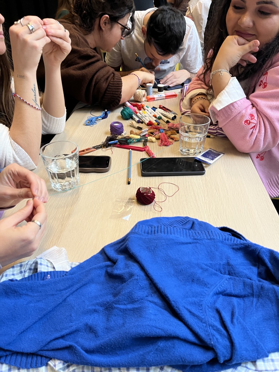 On Sunday, we went on another field trip to Banská Bystrica. We visited 365 Lab, run by Moruša Fashion, a Slovak sustainable fashion brand. This place was a small community center where people could upcycle their clothes, and we tried it ourselves. I realized that I wasn’t very good at this because I had never properly learned how to repair my clothes. I now know I need to work on this more, because knowing how to fix things is a key step in stopping the overbuying of new clothes.