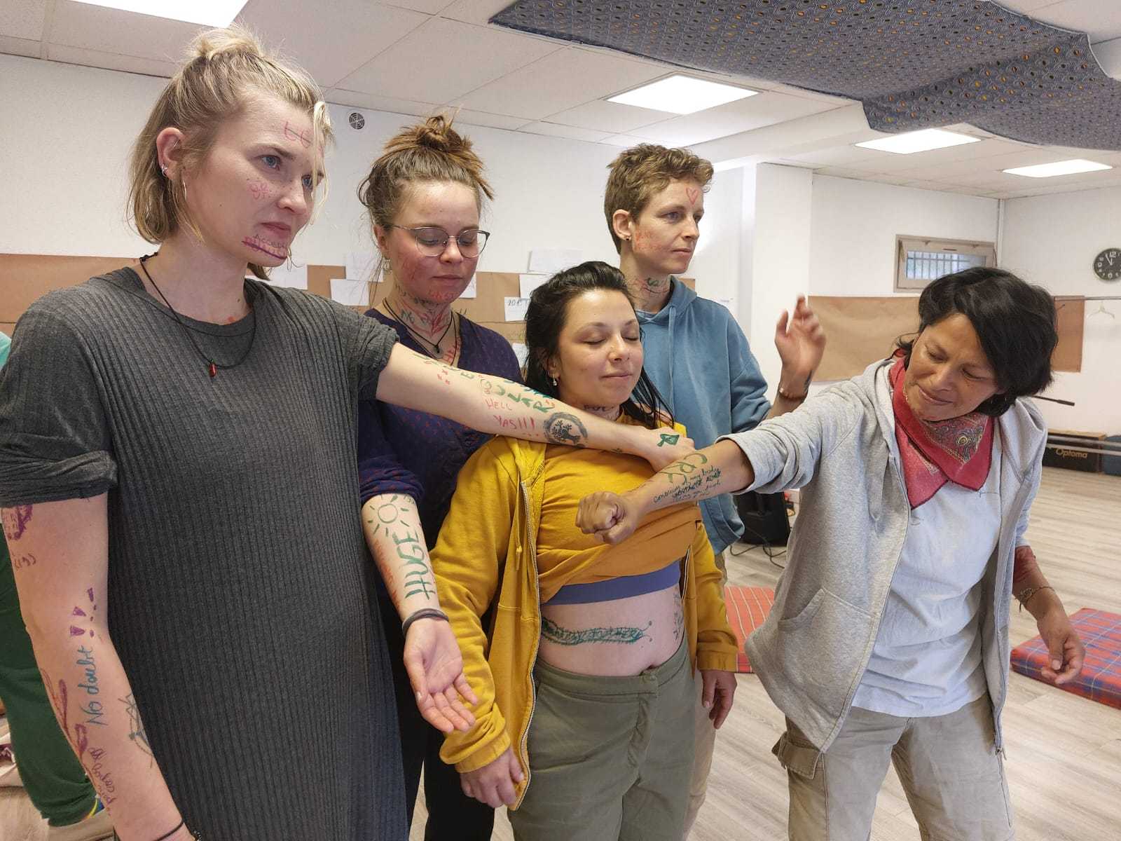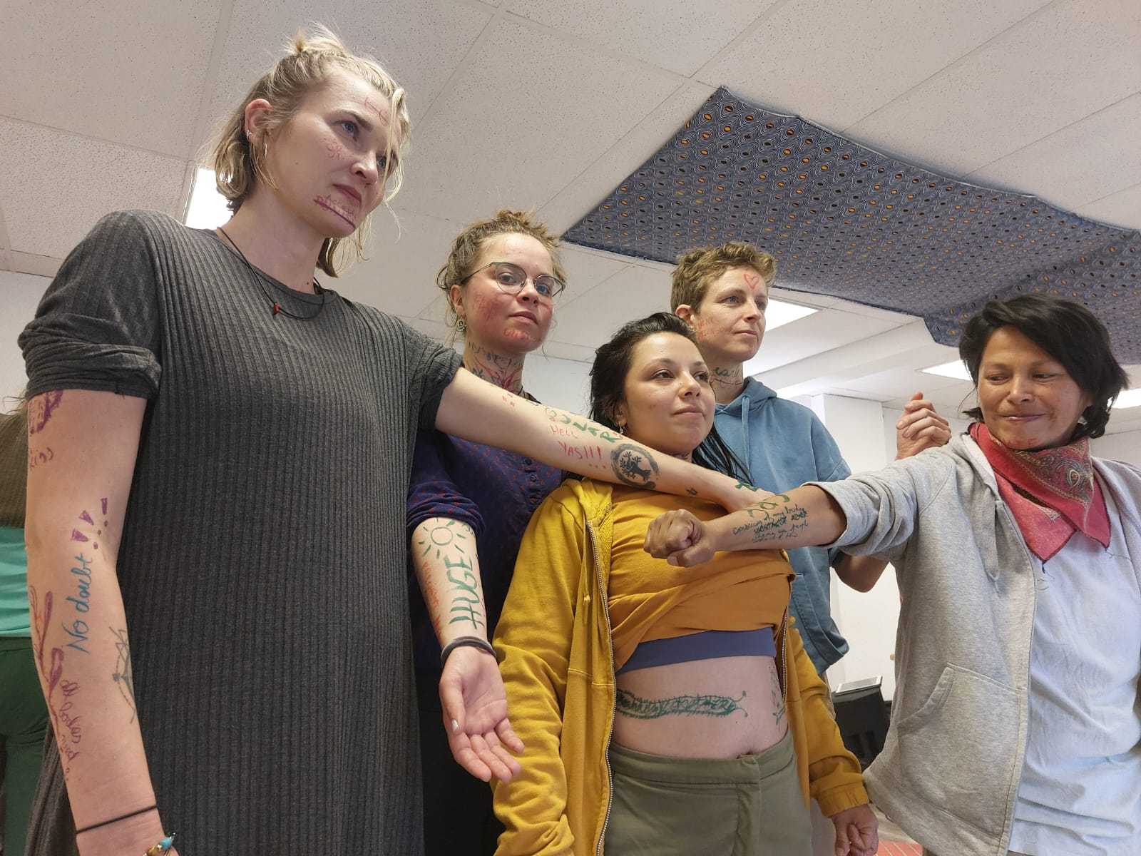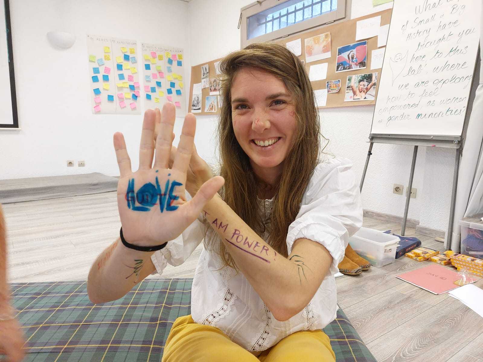 Thanks to the thoughtfully crafted programme and dedication of the facilitators, we were able to create a strong and trusting collective space. Throughout the project, we engaged in many activities that helped us connect with ourselves and each other on a deeper level. Through writing workshops, body movement exercises, theatrical expression, and group discussions, we explored our personal stories as gender minorities and women. We got to meet our societal struggles and learn about the struggles of others. We dived deep into ourselves to meet our inner desires, fears, and strengths. The most meaningful moments for me were the moments of witnessing the vulnerability and bravery of other participants and taking part in empowering each other. One of the most powerful moments was a workshop where we wrote the injustices that happened to our bodies on the bodies of other participants and then recreated them into art or an empowering message, this activity touched, connected and empowered us all.The activities in this project not only strengthened our confidence but also helped us understand the importance of community that listens and supports.