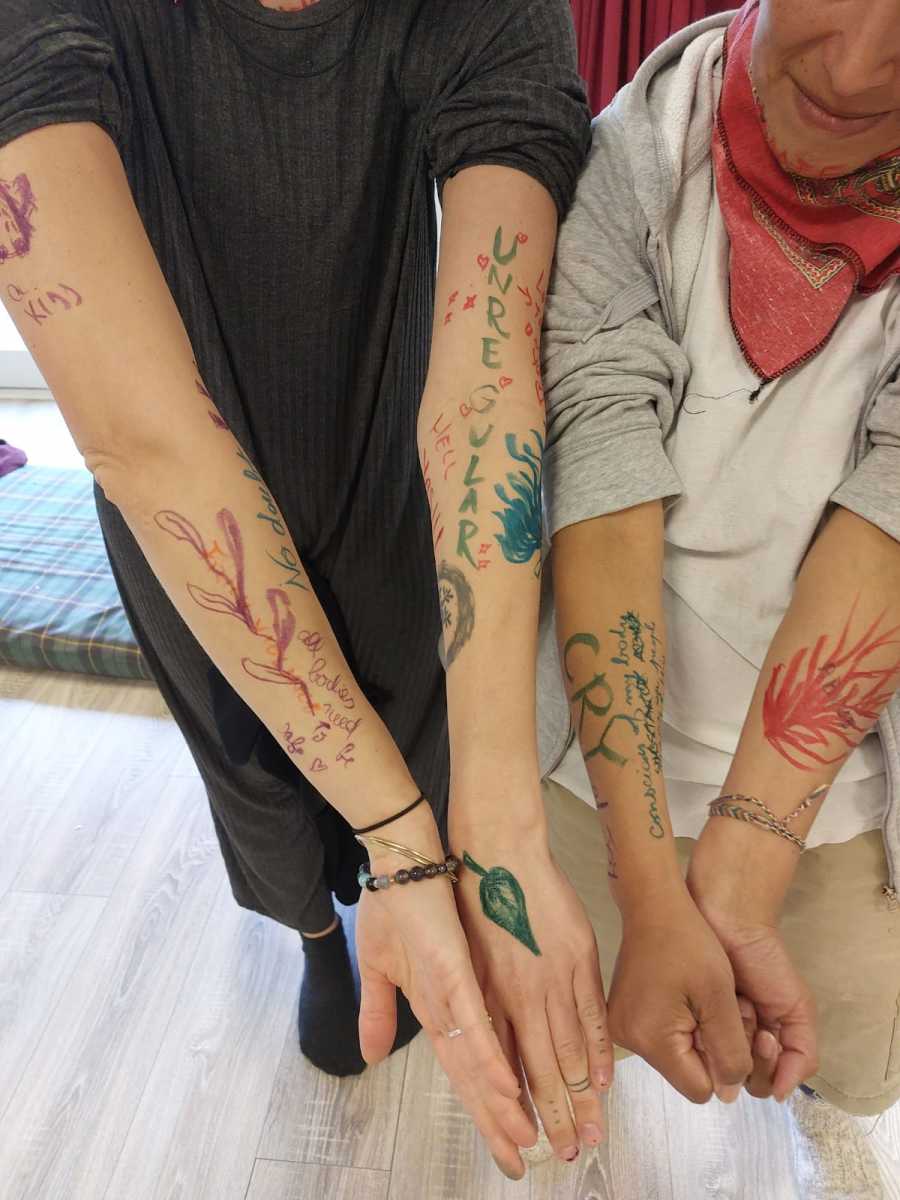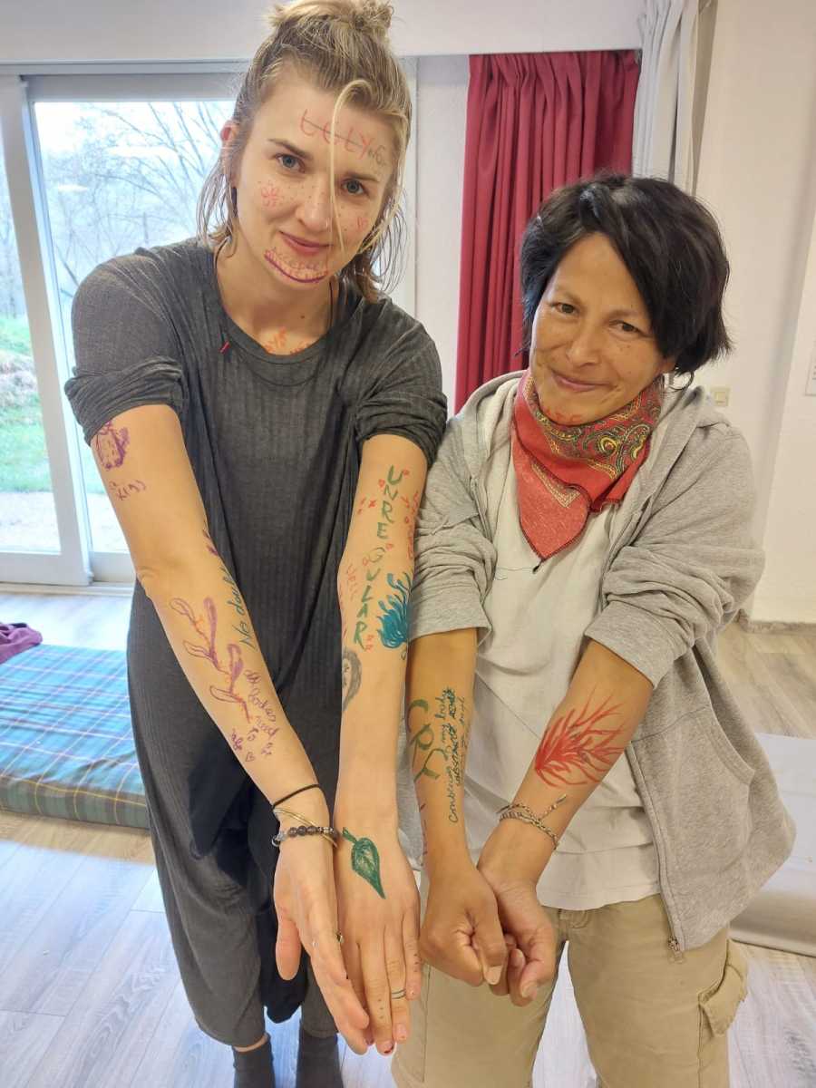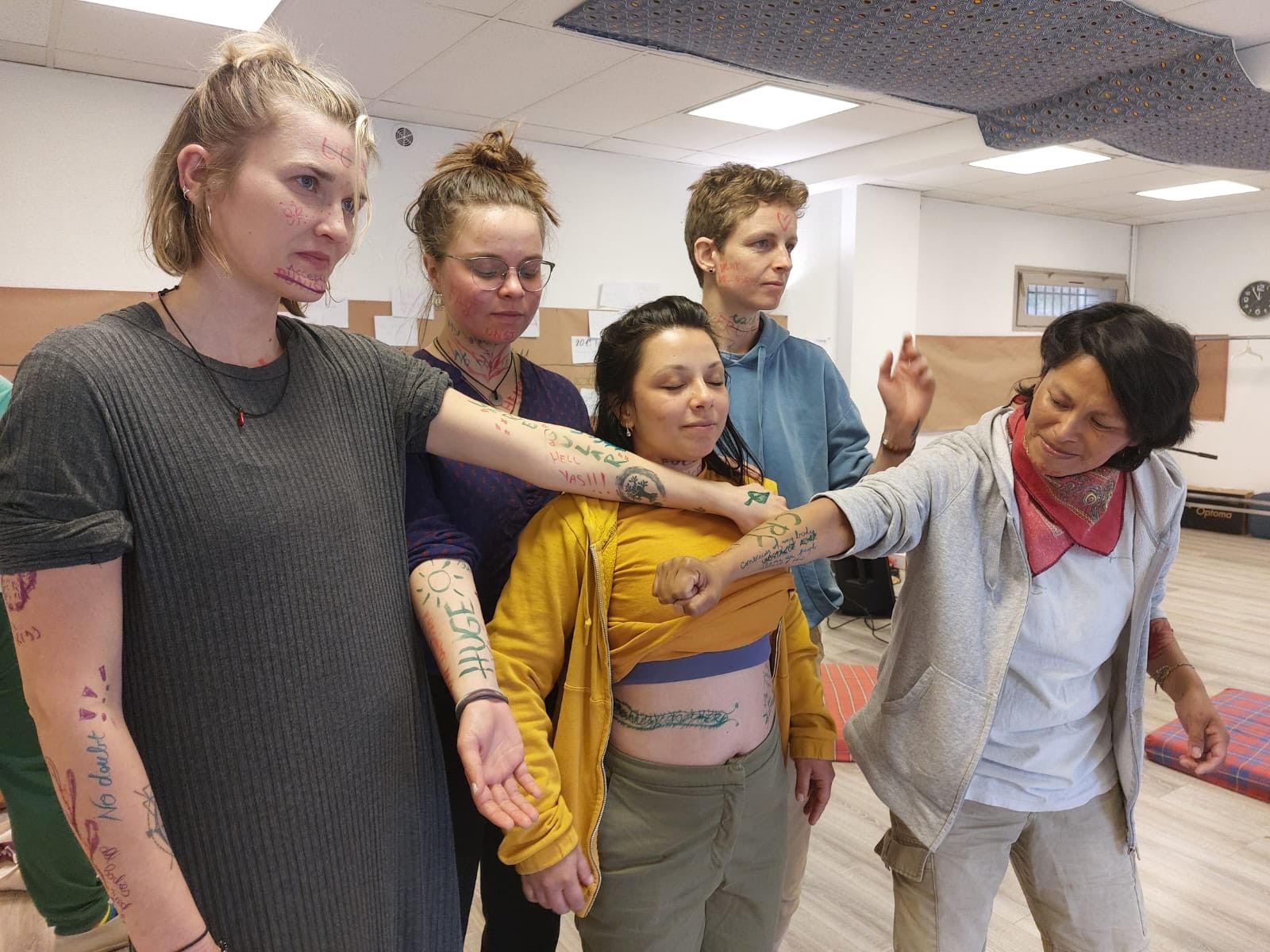 Thanks to the thoughtfully crafted programme and dedication of the facilitators, we were able to create a strong and trusting collective space. Throughout the project, we engaged in many activities that helped us connect with ourselves and each other on a deeper level. Through writing workshops, body movement exercises, theatrical expression, and group discussions, we explored our personal stories as gender minorities and women. We got to meet our societal struggles and learn about the struggles of others. We dived deep into ourselves to meet our inner desires, fears, and strengths. The most meaningful moments for me were the moments of witnessing the vulnerability and bravery of other participants and taking part in empowering each other. One of the most powerful moments was a workshop where we wrote the injustices that happened to our bodies on the bodies of other participants and then recreated them into art or an empowering message, this activity touched, connected and empowered us all.The activities in this project not only strengthened our confidence but also helped us understand the importance of community that listens and supports.