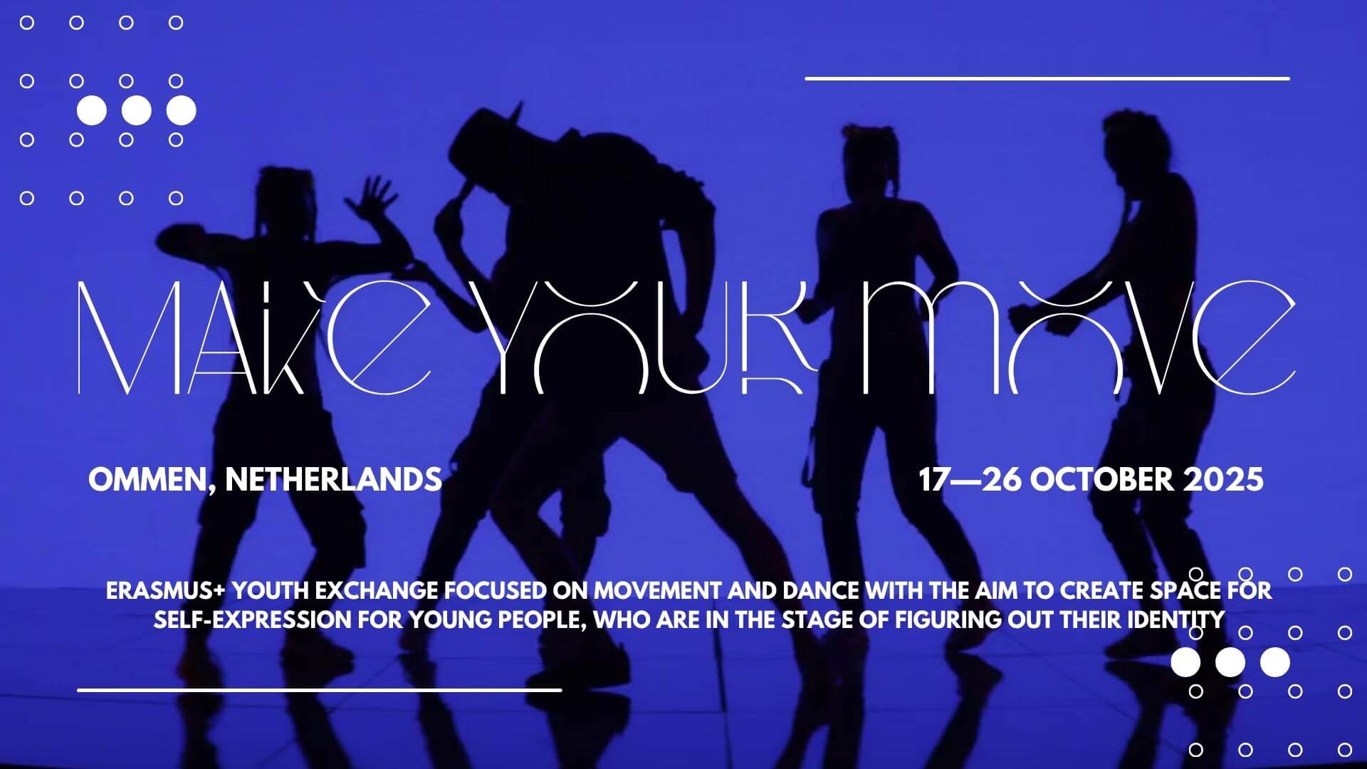 Asi každému z nás se při představě mokrého a studeného podzimu v Praze zalíbí možnost odcestovat. Zrovna jsem začal studovat na univerzitě a měl za sebou první měsíc. Proto jsem udělal jedinou logickou věc, co jsem mohl, přihlásil jsem se na ERASMUS+. Nejlepší práci ve škole přeci odvádíme, když jsme řádně zrelaxováni. Proto jsem si vybral projekt Make Your Move! v nizozemském Ommenu. Program popisoval propojení mladých lidí z různých evropských zemí skrze pohyb, taneční workshopy a meditaci. Jak také jinak se člověk může zrelaxovat z depresivního podzimního počasí, než se odjede pohybovat do vlhkého podzimního počasí do Nizozemska.